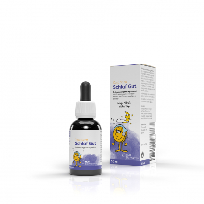 Casa Sana Schlaf Gut enthält eine einzigartige Kombination aus den drei traditionellen phytotherapeutischen Heilpflanzen Passionsblume, Lindenblüte und Zitronenmelisse. Diese enthalten schlaffördernde und beruhigende Eigenschaften und wirken sich somit entspannend auf Kinder aus. Ein gesunder Schlaf fördert auf natürliche Weise das Immunsystem, reguliert den Stoffwechsel und fördert eine emotionale Ausgeglichenheit. Casa Sana Schlaf Gut ist rein pflanzlich und wird ohne Alkoholzusätze und ohne künstliche Zusatzstoffe extrahiert und hergestellt. Das Produkt ist geeignet für Kinder ab 6 Monaten.